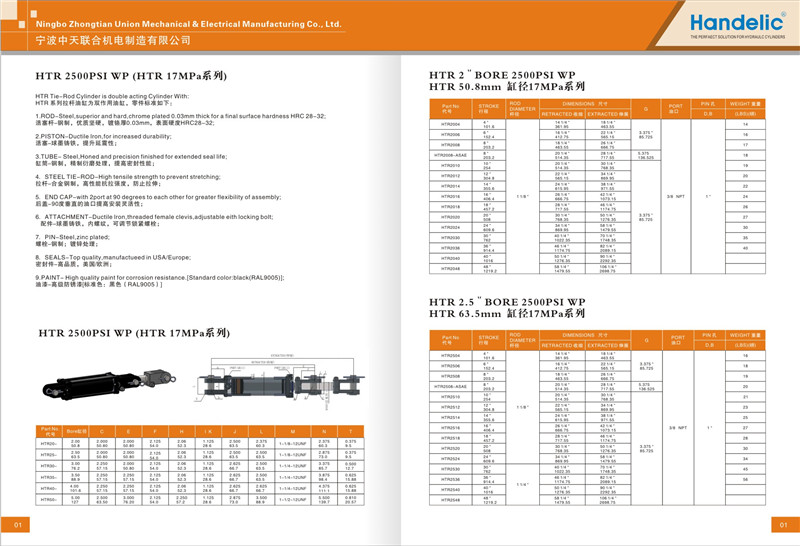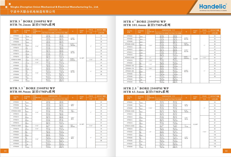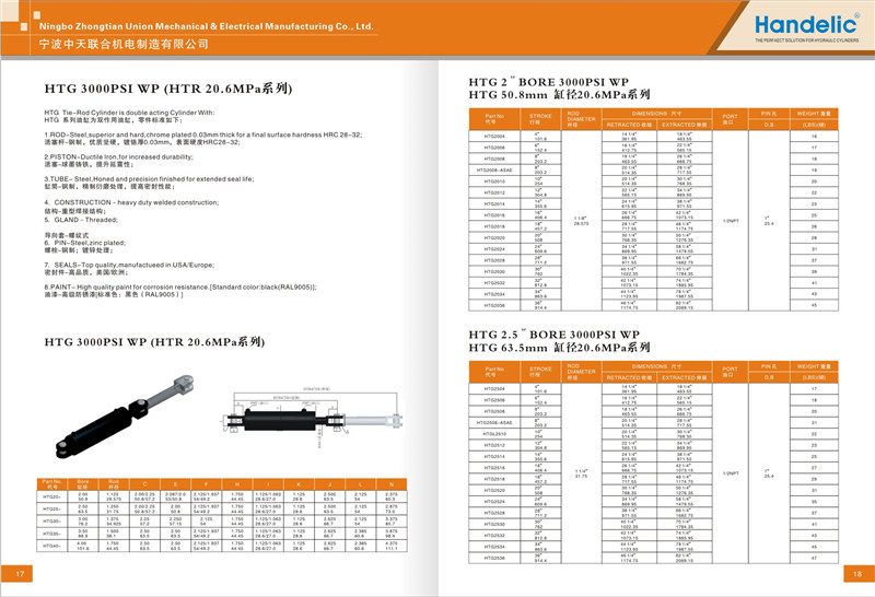 為適應市場對高品質工業(yè)標準油缸的需求,中天公司近期推出了“海德力克”品牌系列標準油缸,產(chǎn)品涉及拉桿油缸和焊接型雙作用油缸。該系列產(chǎn)品結構簡單,客戶可按需求自行選購行程、缸徑、工作壓力等并安裝。“海德力克”系列產(chǎn)品全部采用高品質進口密封件,高品質原料,并且嚴格按照國際標準精工制作。“海德力克”承諾提供多達18個月的質量保證,并提供專業(yè)安裝指導和技術支持,歡迎選購。